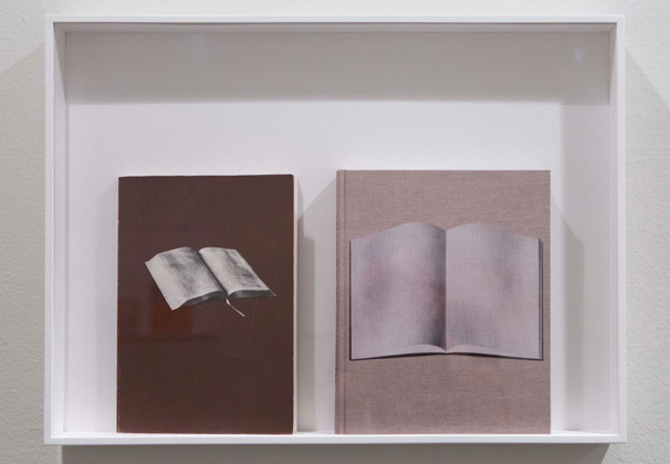 El llibres seleccionats estableixen una relació similar a l’obra de Brecht doncs presenten a les seves portades la imatge d’altres llibres -oberts o tancats-, prestatgeries i altres objectes bibliòfils. L’element comú que travessa la selecció duta a terme pels comissaris és doncs el joc autoreferencial que transforma el llibre en un entramat de complexes capes de significat.