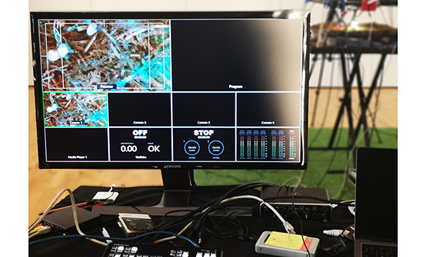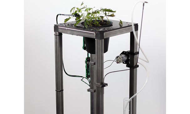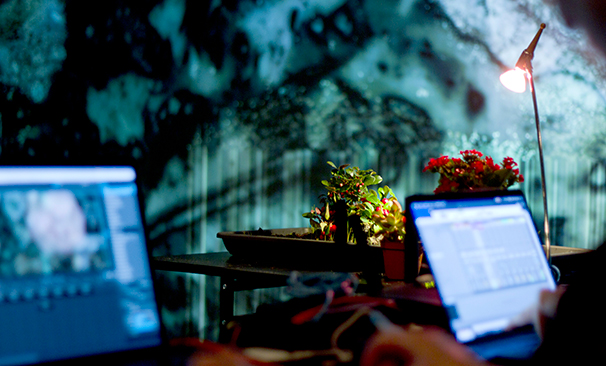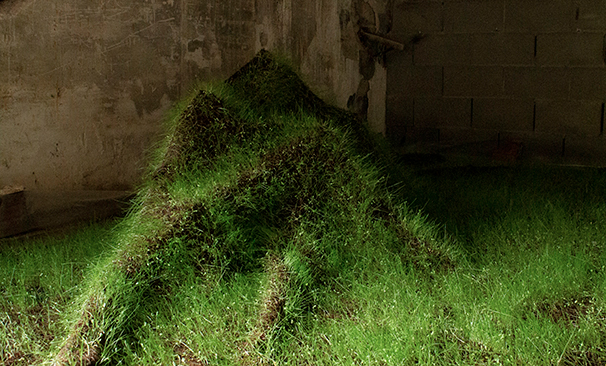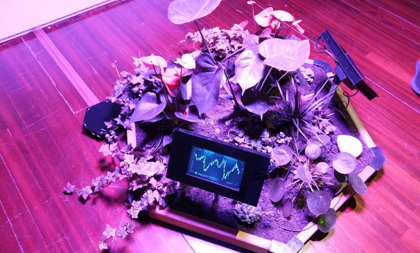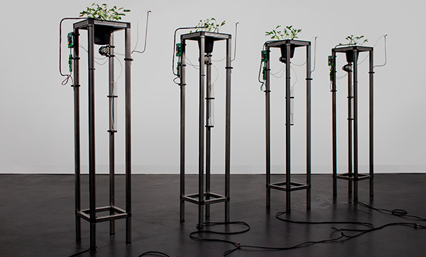 Instal·lació amb plantes, objectes mecanitzats, i vídeo projectat.