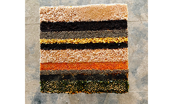 Instal·lació exterior a partir de material comestible per a aus.